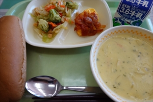 食パン マーマレード 牛乳 照焼チキン ひじきサラダ 豆のクリームスープ