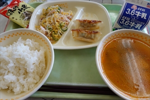 ごはん 牛乳 鮭のスタミナ焼き かんぴょうサラダ 味噌けんちん