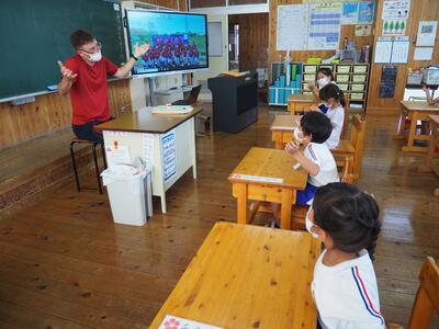 1・2年生が外国語活動を行いました。 投稿日時 : 2022/06/28 sakagawasho カテゴリ:1・2年 1・2年生で外国語活動を行いました。 英語に親しむことができました。次の外国語活動も楽しみです。