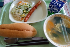 セルフドック(パン・ウインナー) 牛乳 春雨サラダ 洋風玉子スープ