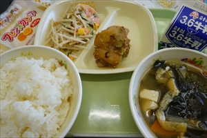 ごはん 牛乳 鶏肉のスタミナ焼き根菜サラダ 豆腐とわかめの味噌汁 みかんクレープ