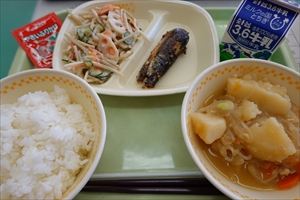 1月20日の給食 737kcal 投稿日時 : 2021/01/20 sakagawasho カテゴリ:給食関係 ・ごはん ・牛乳 ・イワシの生姜煮 ・根菜サラダ ・ジャガイモのそぼろ煮 ・野菜ふりかけ