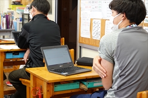 学校では、GIGAスクール構想が推進され、児童1人1台のタブレットが導入されています。授業の中で有効に活用するために、先生方も研修に励んでいます。今日の放課後は、講師をお招きし、6年教室でタブレットの研修を行いました。