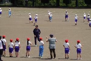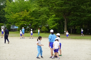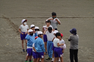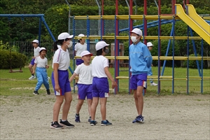 業間(焼森タイム)は、5・6年生が不在のため、1~4年生で鬼ごっこをしました。むし暑い中でしたが、元気に走り回っていました。