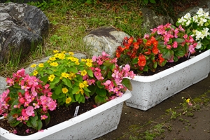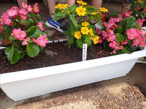先日、グリーン活動で縦割り班で植えたプランターと6年生のレンタルプランターが玄関先に置いてあります。どちらも、きれいに咲き始めています。