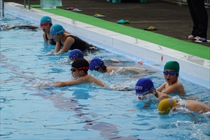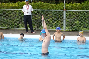 2校時に、5・6年生は、体育実技指導者派遣事業として、パシフィックスポーツプラザのコーチングスタッフ2名が来校し、水泳の指導をしていただきました。専門家による指導で、水泳の上達が期待できますね。
