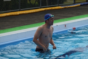 体育実技指導者派遣事業として、パシフィックスポーツプラザのスタッフ(2名)に水泳の指導をしていただいています。2校時は、3・4年生が教えていただきました。