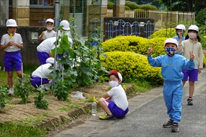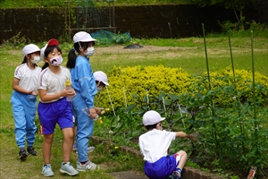 2校時に、生活科で育てている農園の野菜を観察しました。日に日に成長しているので、収穫が楽しみです。