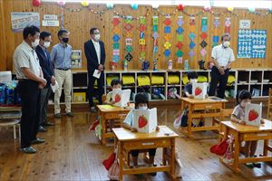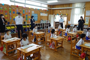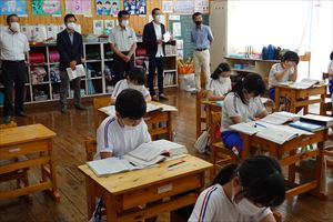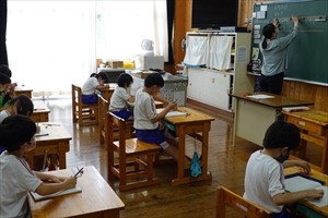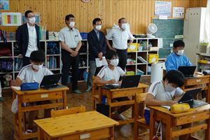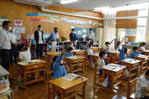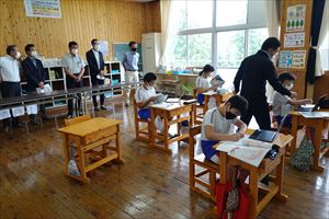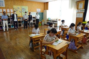 5校時に、学力向上コーディネーターの金澤先生、町教委から金井・栁先生、芳賀教育事務所から松尾先生が来校し、子どもたちの授業のようすを見てもらいました。子どもたちの学力向上、先生方の指導力改善を目的に、今後も学力向上コーディネーターの金澤先生を中心に、指導していただく予定です。