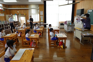 昨日より、1・2年生の給食の場所が、ランチルームからエアコンのある地域活動室になりました。暑い夏場も、快適に食事ができます。