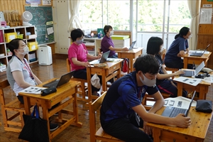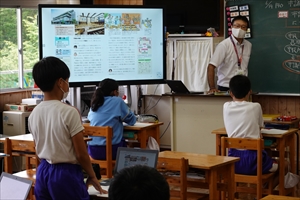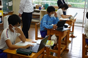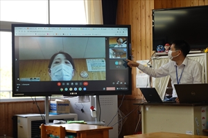 授業参観後の全体会は、体育館で行う予定でしたが、各教室でリモートで実施しました。暑さ対策とともに、今後リモートによる学習活動も行われる可能性があり、児童が普段使用しているタブレットと同じものを活用し、試験的に実施しました。初めてのことだったので不安もありましたが、なんとか成功しました。