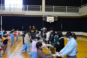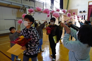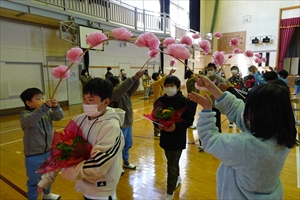 業間から3校時にかけて、6年生を送る会を体育館で行いました。4・5年生が中心となり、これまでに準備を進めてきました。手作りの会でしたが、6年生への感謝の気持ちをこめて、心のこもった会になりました。