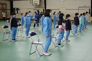 朝の活動で、卒業式の会場の片付けを3~5年生で行いました。短時間で、手際よく、片付けができました。