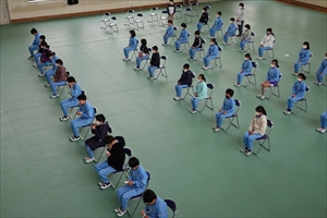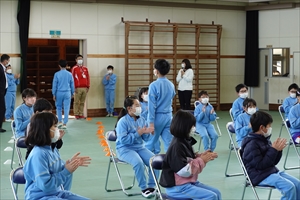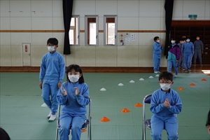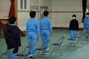 昼休みに、明日の修業式のリハーサルを体育館で行いました。代表児童を集め、動き等を確認しました。
