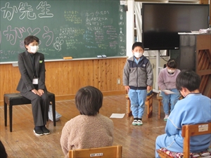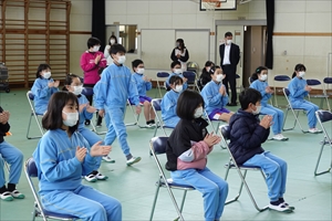 新規採用の2年担任小林先生の指導教員として、今年度週1日お世話になった手塚先生が、本日最終日となりました。2年生は、3校時にお別れ会を行いました。1年間、ありがとうございました