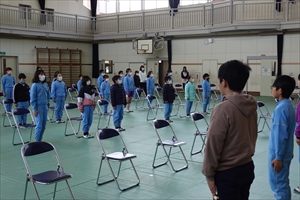 業間は、登校班集会を体育館で行いました。4月からの新しいメンバーでのバスの座席等を担当の先生と一緒に決めました。若干のコースの変更や時間の変更等も確認しました。