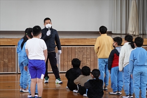 昼休みに、明日の修業式のリハーサルを体育館で行いました。代表児童を集め、動き等を確認しました。