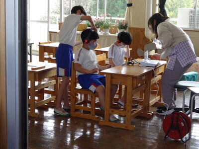 本日3校時に、身体計測を行いました。身長や体重の計測、視力、聴力の検査をしました。みんな静かに落ち着いて、身体計測、検査を受けていました。