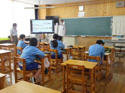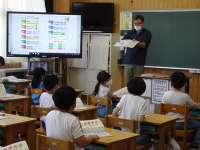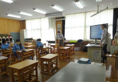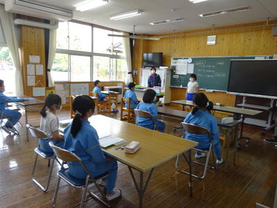 月曜日は、週1日の外国語専科教員と英語指導助手(ALT)による授業があります。6年生が積極的に学習に取り組んでいました。