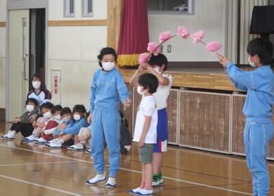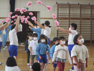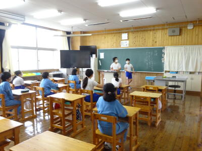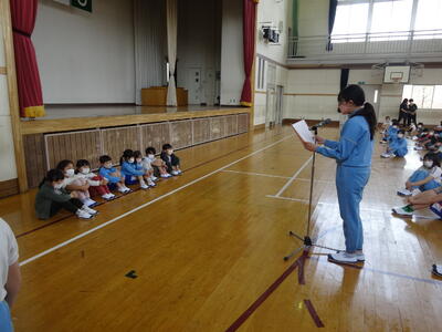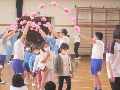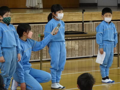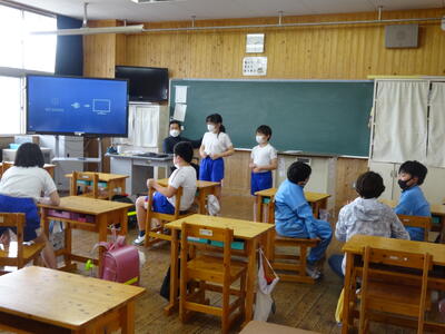 業間(焼森タイム)は、児童会主催の「1年生を迎える会」を体育館で行いました。5・6年生が運営する初めての集会でしたが、自分たちで考え、一生懸命に取り組みました。8名の1年生も元気にインタビューに答えることができました。縦割り班の顔合わせもありました。アットホームのあたたかな会となりました。