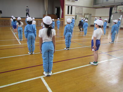 集団行動が素早く、美しく行えるようにみんなで意識してできました。