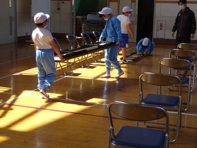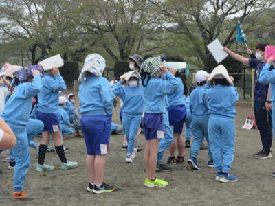 しっかり頭を守り、静かに避難できました。1年生も小学校に入って初めての避難訓練でしたが、きちんと避難ができました。