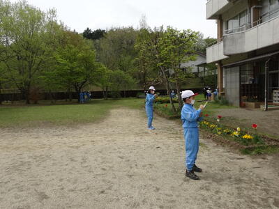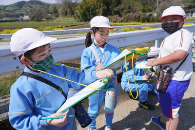 今日はよい天気で、3,4年生がたまたま同じ時間に観察活動をしていました。3年生は「生き物をさがそう」4年生には「春の生き物」の学習です。虫を見つけたり、春の草花を見つけたりしていました。