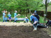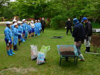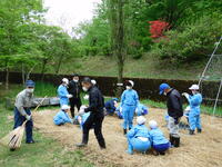 御指導をいただきながら、マルチの上に、昨年度までの農業ボランティア清宮さん御提供の