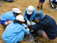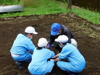5年生は、理科の時間にカボチャの苗を植えました。農業ボランティアの谷中さん御夫妻の