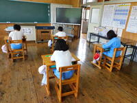 1年生と4年生は,図工室で心臓病検診を受けました。