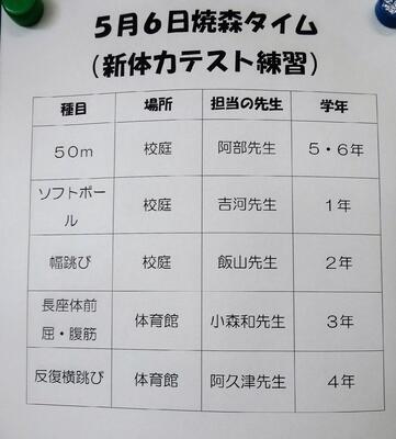 今日の焼森タイムは、体力つくりで3回目の新体力テストの練習を体育館でしました。