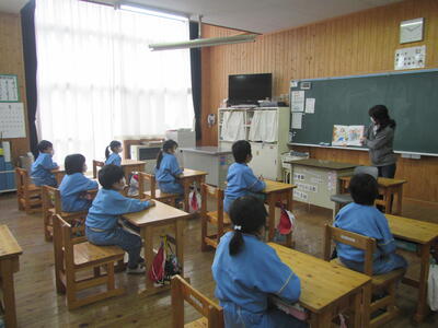 茂木警察署生活安全課の方、駐在所のおまわりさん、スクールサポーターの方が来校され、不審者に対する避難訓練が行われました。安全な状態になるまで、子供たちは、先生の指示に従い、静かに教室で我慢強く待っていました。