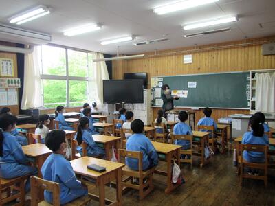 今日の焼森タイムは、図書ボランティアさんによる読み聞かせの時間でした。各学年、お話の中に引き込まれている様子が見られました。