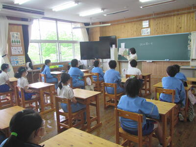 1校時に3,4年生でサツマイモの苗植えをしました。農業ボランティアの方のご指導で、子供たちはサツマイモの苗を丁寧に植えていきました。たくさん収穫でき、おいしいおいもを食べたいですね。