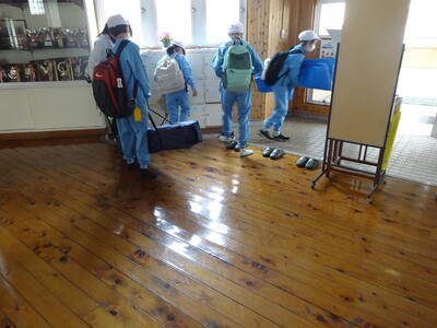 当初は前庭で実施予定でしたが,残念ながら雨天のため,体育館での実施となりました。
