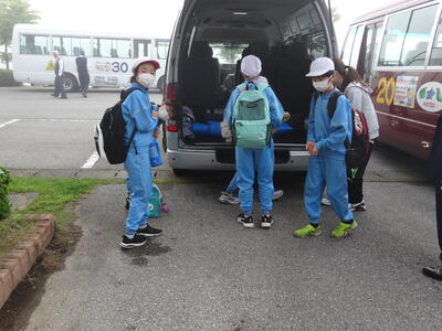 芳賀郡市陸上記録会に出場する選手たちが出発していきました。