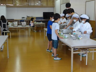 職員と5年生で机椅子を運びました。場所が変わりましたが、