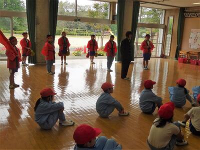 今朝は,すごく冷え込みましたが,6年生は明るく元気に出発式を行い、出発して行きました。