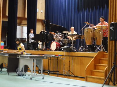 中学生のより合唱を聴いた後、招待演奏でパーカッション&ピアノユニット「まりずむん」の演奏を聴きました。