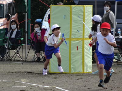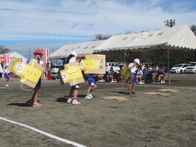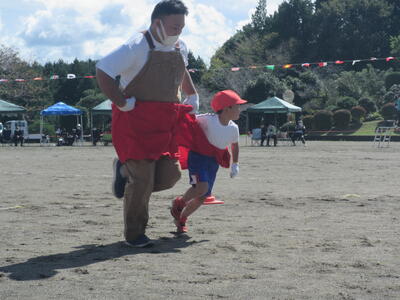 メニューのフォトアルバムに、運動会のプログラム 7一発逆転レース~14親子でデカパンをアップしました.ご覧ください。