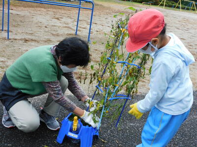 1校時に3・4年生でサツマイモ掘りをしました。農業ボランティアの方が、事前につる切を行ってくださり、今日も掘る前の準備、掘る時の御指導,片付けまで大変お世話になりました。たくさんサツマイモが収穫できました。ボランティアの方に、すぐに食べないで、しばらく保存して食べるとおいしく食べられると教えていただいてました。秋の味覚を楽しんでいただけたら思います。