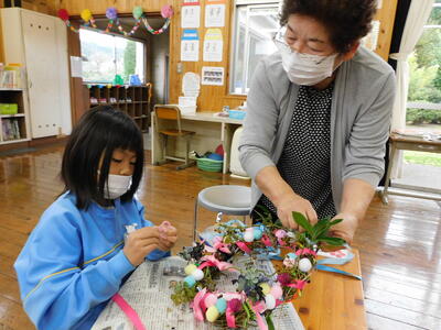 素敵な材料などもご用意くださり、きれいな朝顔のリースができあがりました。1年生もとてもうれしそうでした。