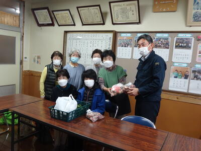 朝顔のリースづくりの前に,校長室にて、更生保護女性会の皆様より、チューリップの球根を90球いただきました。