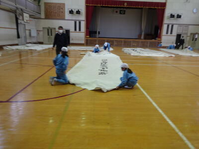 晴れていれば校庭でできたのですが…。残念ながら雨で体育館の練習となりましが、