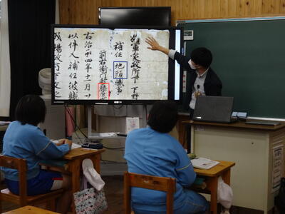 電子黒板と黒板を使い分けて、わかりやすく授業を行ったり、実物を使って、体感することを大切にしたりするなどくふして学習しています。
