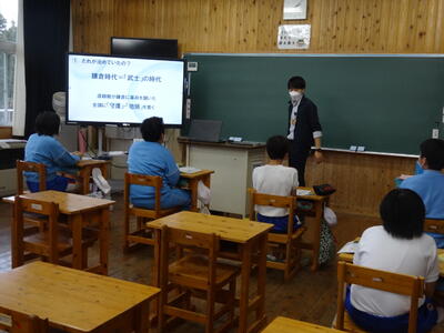 6年生の総合的な学習で、来週、修学旅行で訪れる「鎌倉」の事前学習として、鎌倉時代の茂木と鎌倉の関係などふみの森から講師をお迎えしての授業を行いました。来週行く鎌倉が身近に感じられ、訪れた時、より深くを学べるのではないかと思います。