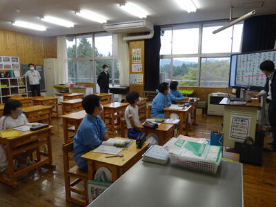 今日は、町教育委員会、芳賀教育事務所、芳賀四町教育研究協議会の先生方をお迎えして、授業参観をしていただきました。訪問者の先生方から、子供たちがとてもよくあいさつができている。集中して、みんなで協力して授業に取り組めている。休み時間も学年関係なく、仲良く遊んでいる。上級生がしっかりと自分たちの役割を果たしているなどお褒めの言葉をたくさんいただきました。授業の様子だけ画像で紹介します。
