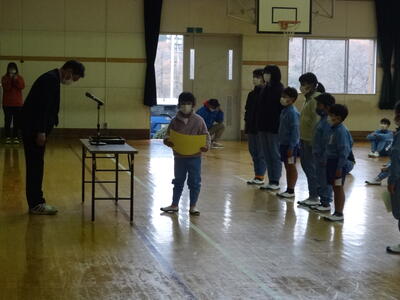 児童の代表からは、2学期頑張ったこと、冬休みに楽しみにしていること目標などの発表がありました。代表の子それぞれが、立派に発表できました。