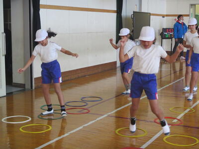 今日の体力つくりは、上学年とか学年に分けられてのサーキットトレーニングです。