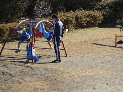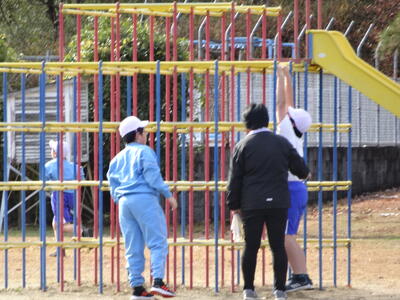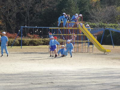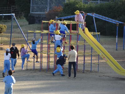 4~6年生が委員会活動をしている時間、3年生は、理科の観察の続きをグループで協力して取り組んでいました。それが、終わったら、元気に遊んでいました。1年生は、ジャングルジムでみんなそろって遊んでいました。